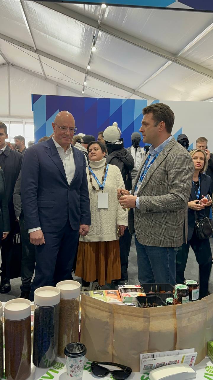 Получили возможность рассказать о нас заместителю Председателя Правительства РФ Чернышенко Дмитрию Николаевичу и губернатору Кузбасса Цивилёву Сергею Евгеньевичу, по-моему, мы вызвали удивление, появившись среди подъемников, снегоходов и горнолыжного снаряжения.